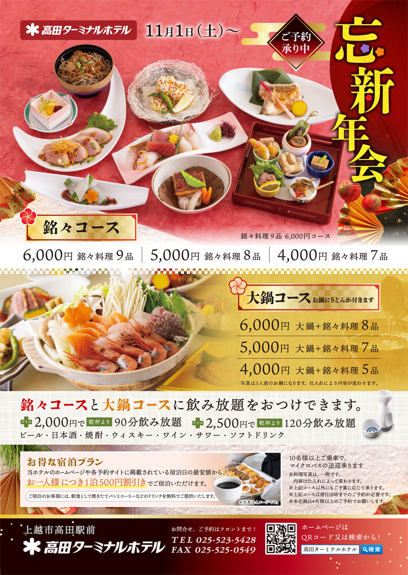 高田ターミナルホテル HOME 高田ターミナルホテル ご宿泊プラン 高田ターミナルホテル お部屋のご案内 高田ターミナルホテル 飲食のご案内 高田ターミナルホテル 施設のご案内 高田ターミナルホテル 交通アクセス 高田ターミナルホテル 周辺観光